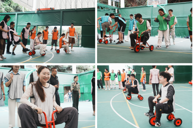 在接力骑行、无敌风火轮、合力筑塔、疯狂毛毛虫等挑战任务中,各团队群策群力、默契协作,充分发挥智慧与创造力。参与教师纷纷感慨:“素质拓展活动既充满趣味,又凝聚了团队力量,让我们真切感受到‘温暖商大’的情怀。”大家表示,将以更饱满的热情投身工作,在商大成就更好的自己。